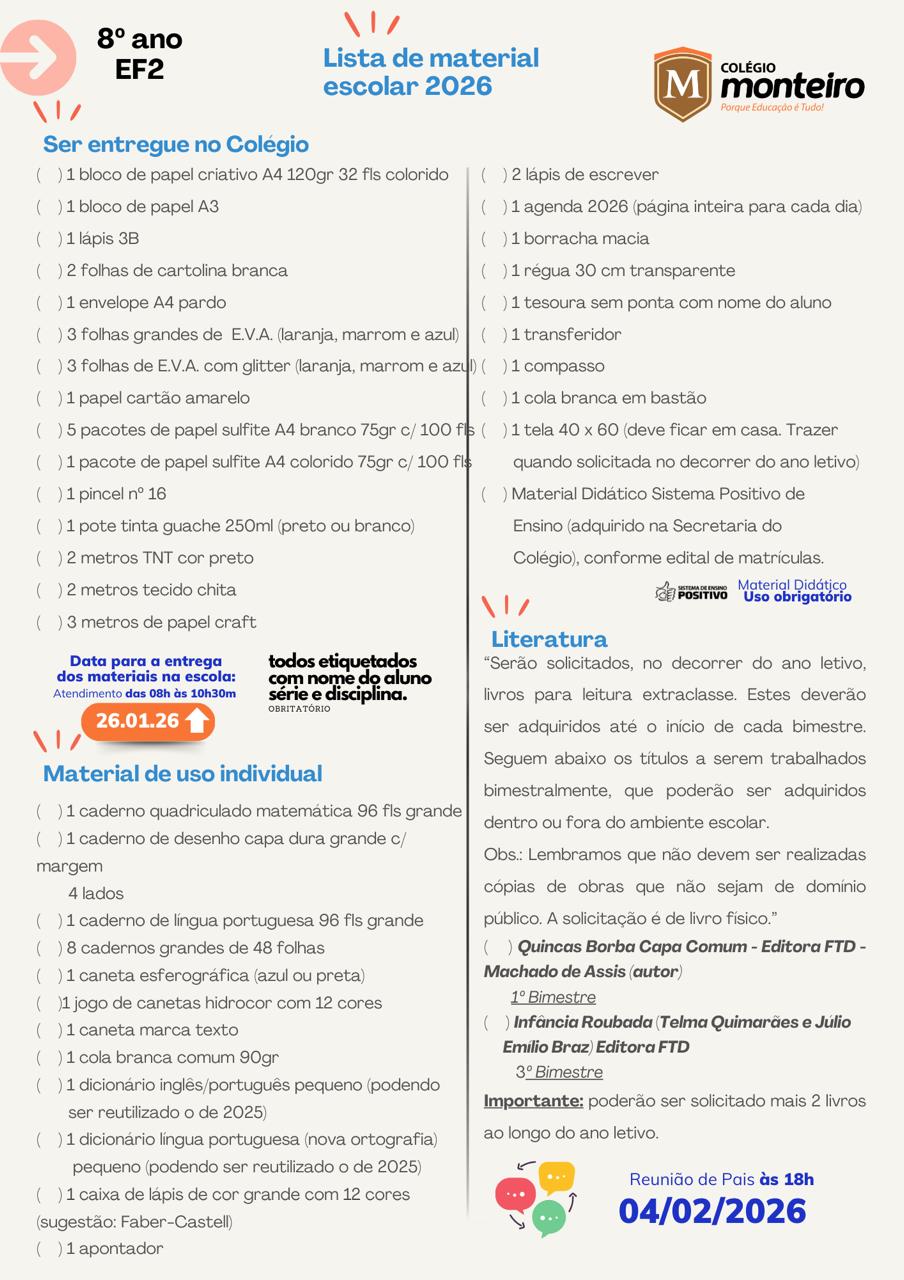 Mais um ano se aproxima e com ele novos planos, novas expectativas e a certeza de que teremos mais um ano de muitas aprendizagens em nossas vidas. É com grande entusiasmo que damos as boas-vindas ao ano escolar de 2026.