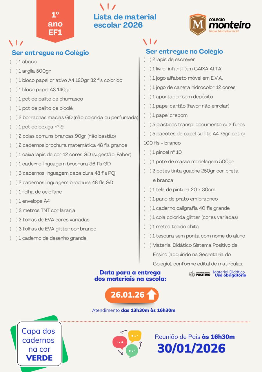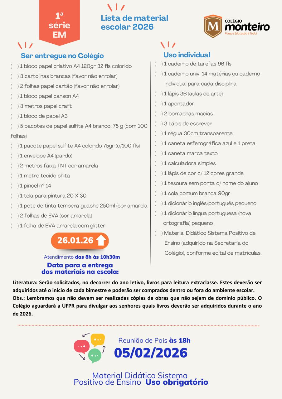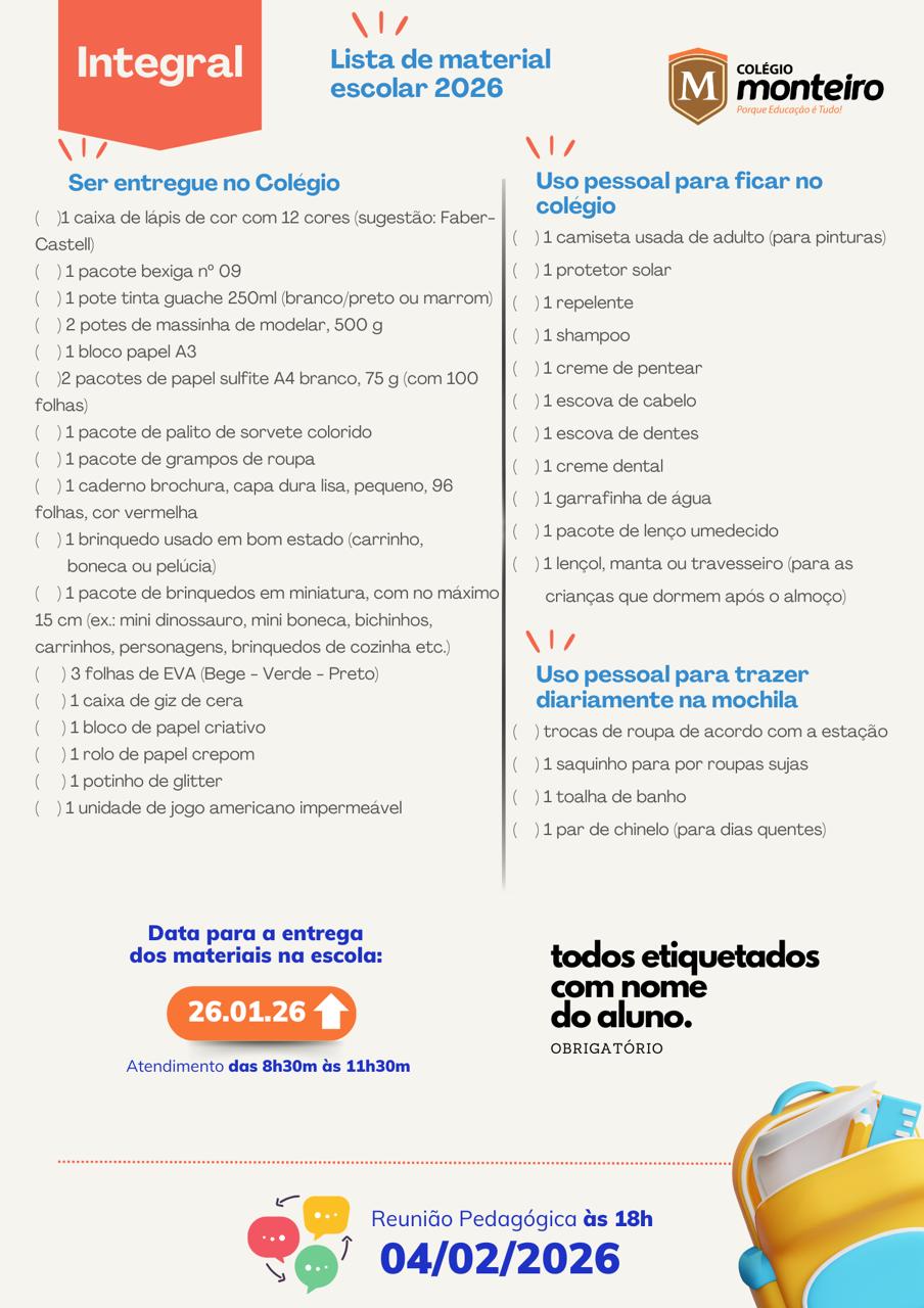 O Colégio Monteiro Lobato, com sede em Guaratuba, Paraná, atendendo aos preceitos legais, comunica ao Senhores Pais, alunos e interessados, os valores da anuidade, período de matrículas e documentos obrigatórios, para o ano letivo de 2026, conforme segue.