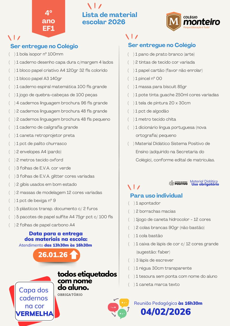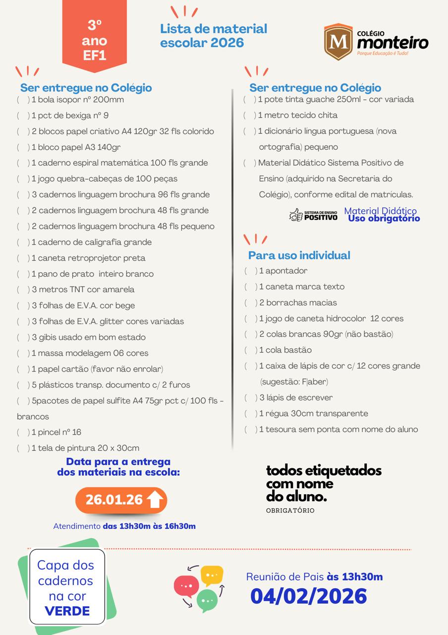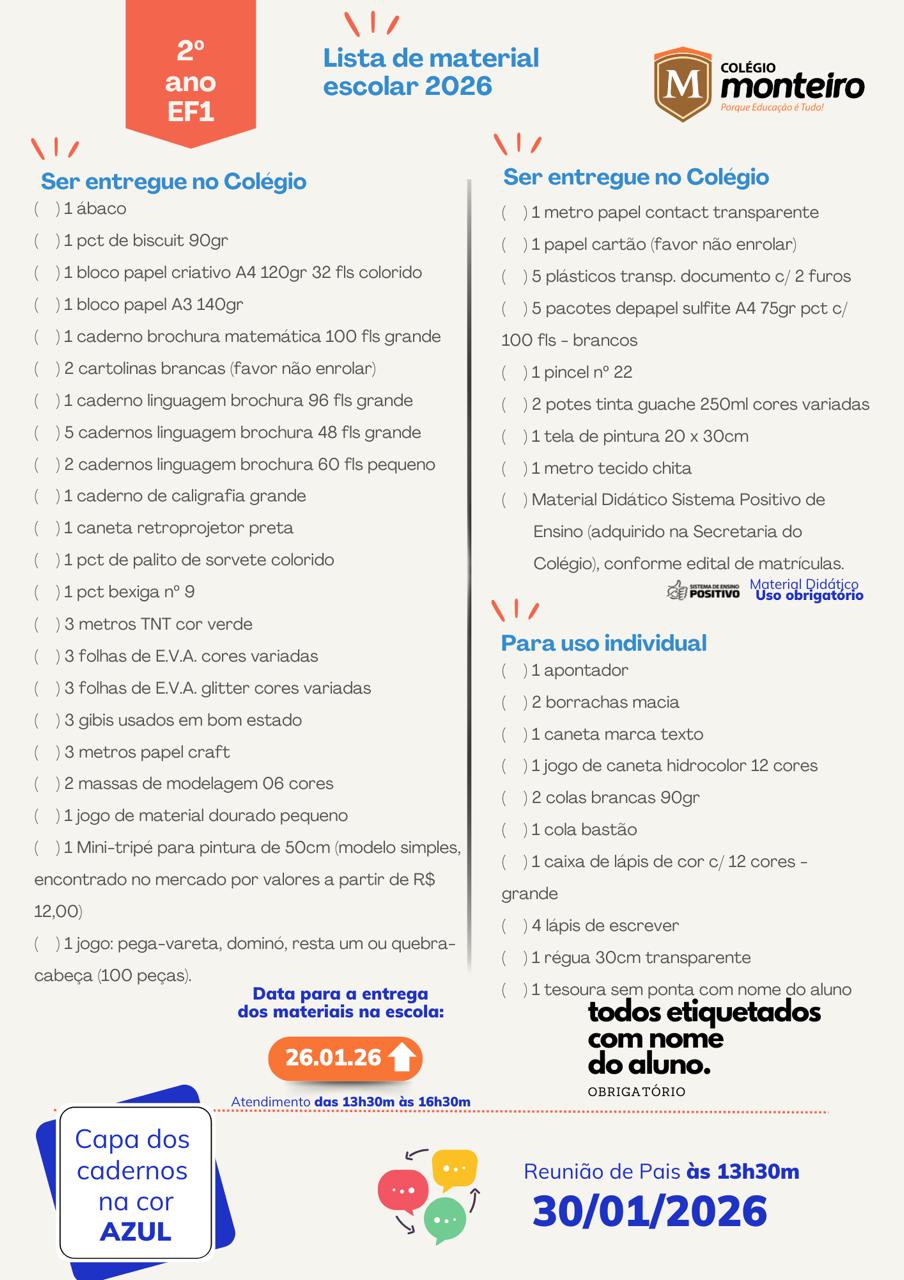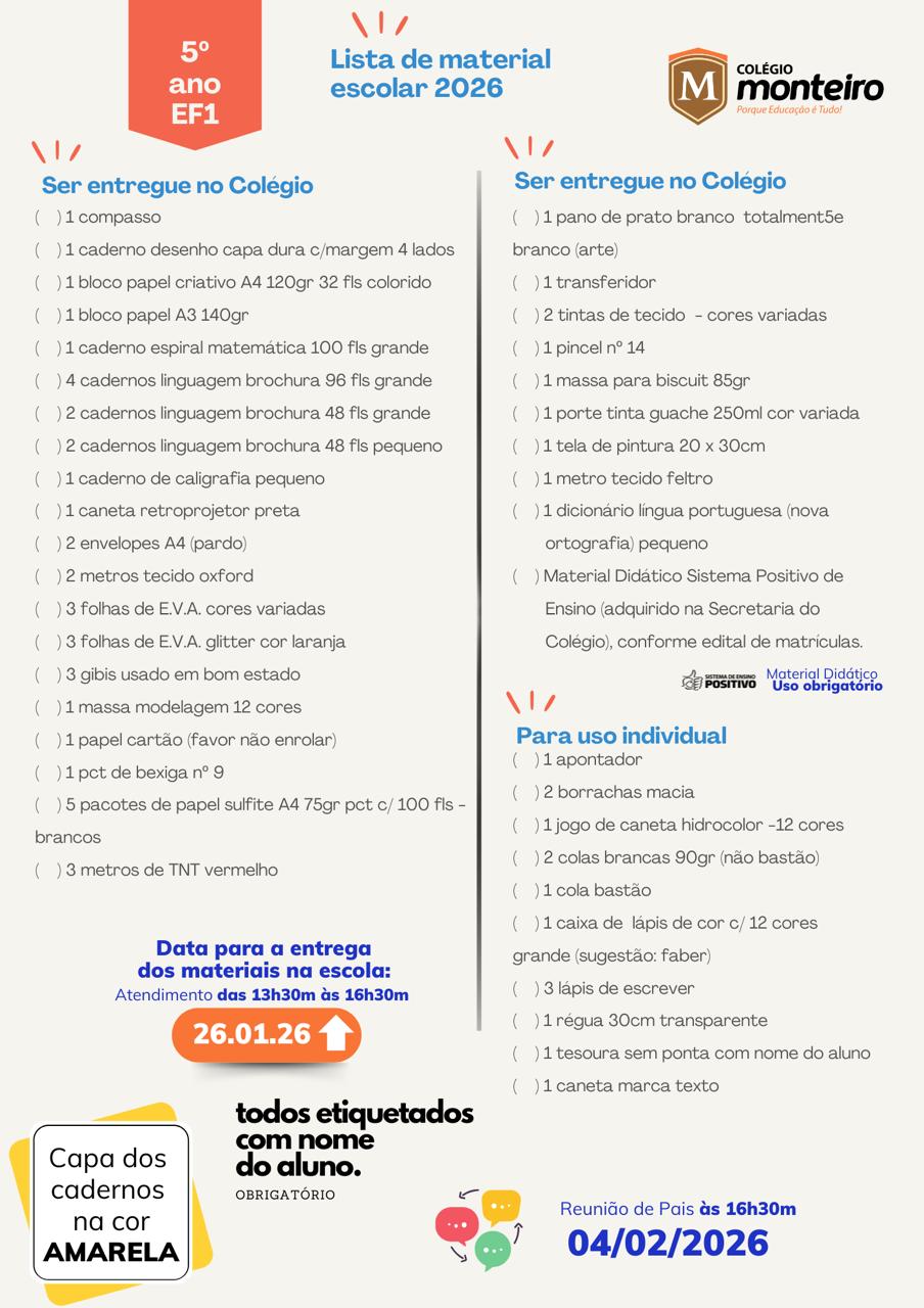 O Colégio Monteiro Lobato, com sede em Guaratuba, Paraná, atendendo aos preceitos legais, comunica ao Senhores Pais, alunos e interessados, os valores da anuidade, período de matrículas e documentos obrigatórios, para o ano letivo de 2026, conforme segue.