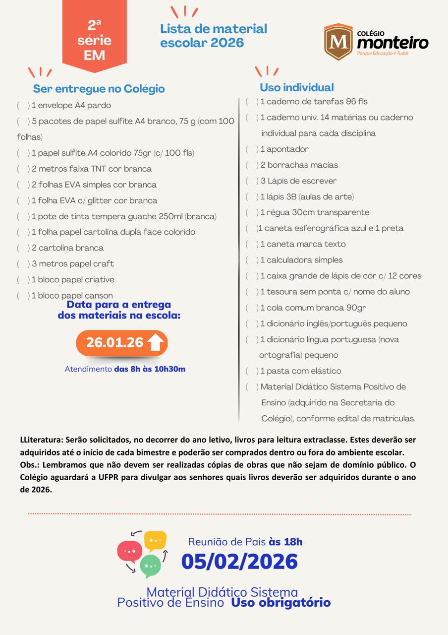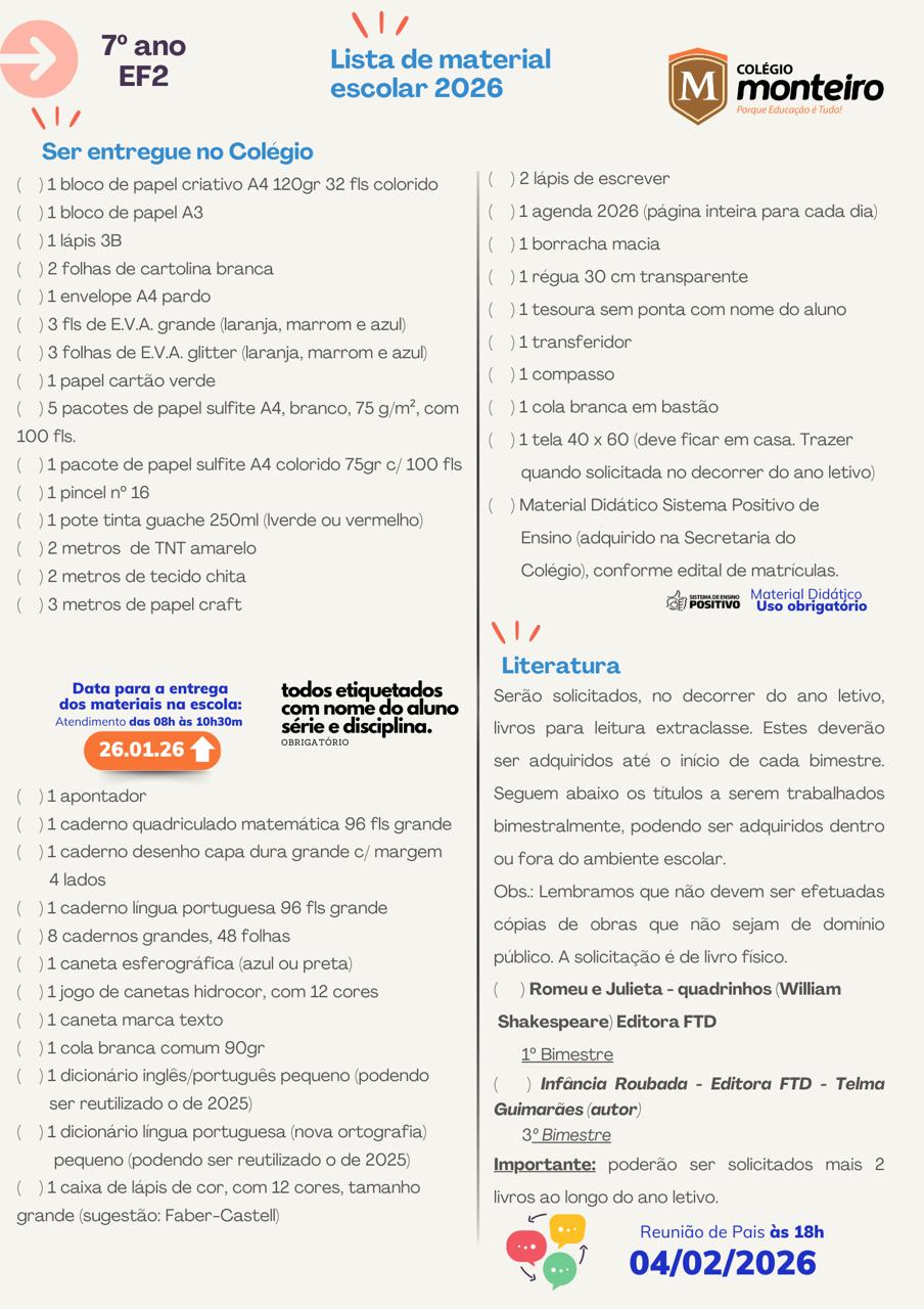 Desejamos a todos um excelente ano escolar de 2026, repleto de descobertas, desafios e conquistas. Que possamos caminhar juntos, família e escola, na construção de um futuro promissor para nossos estudantes.