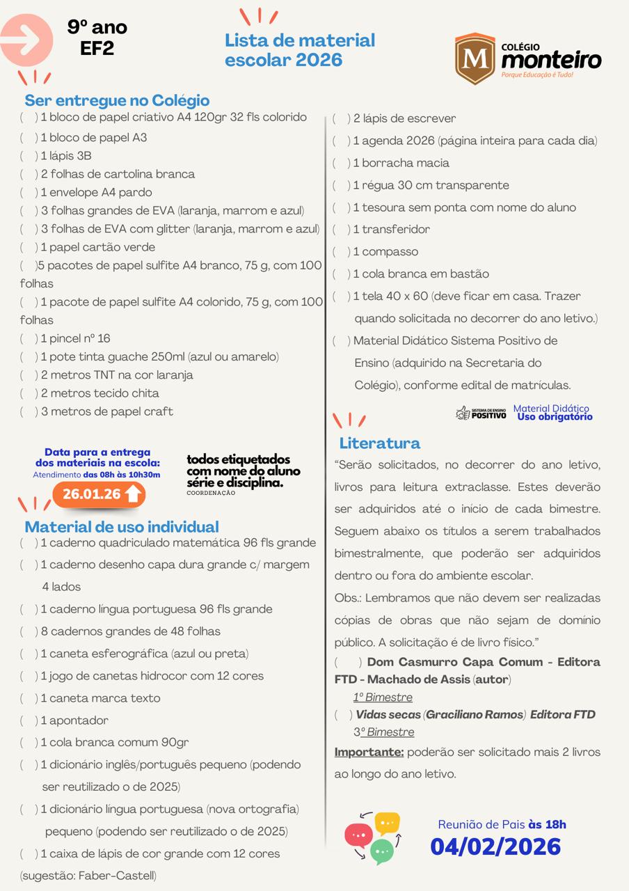 Mais um ano se aproxima e com ele novos planos, novas expectativas e a certeza de que teremos mais um ano de muitas aprendizagens em nossas vidas. É com grande entusiasmo que damos as boas-vindas ao ano escolar de 2026.