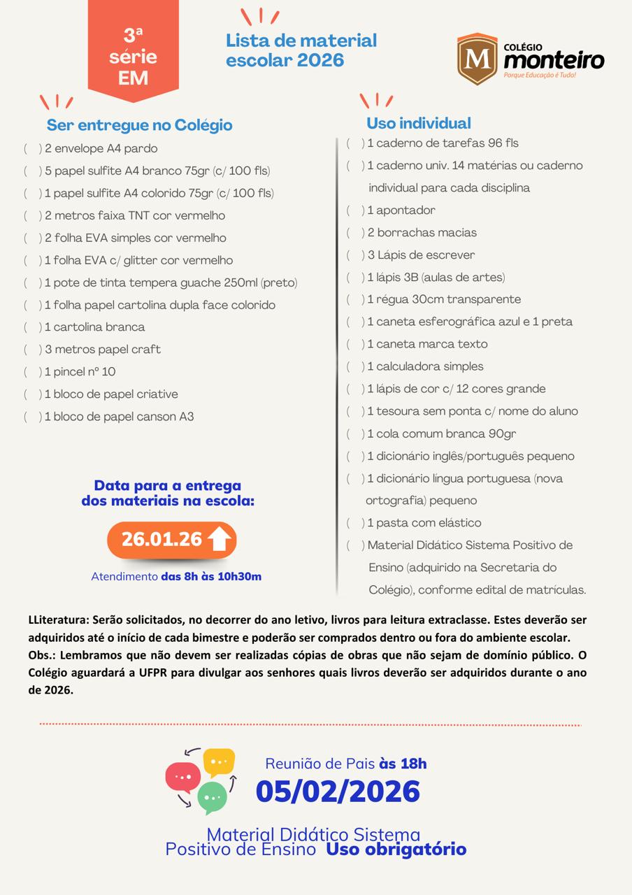 Neste ano escolar de 2026, também estaremos comprometidos em fortalecer a parceria entre escola e família. Reconhecemos a importância do envolvimento dos pais no processo educativo e convidamos a todos a participarem ativamente da vida escolar de seus filhos. Estamos abertos ao diálogo e prontos para ouvir sugestões, críticas e contribuições, pois acreditamos que juntos podemos construir uma educação ainda mais significativa.
